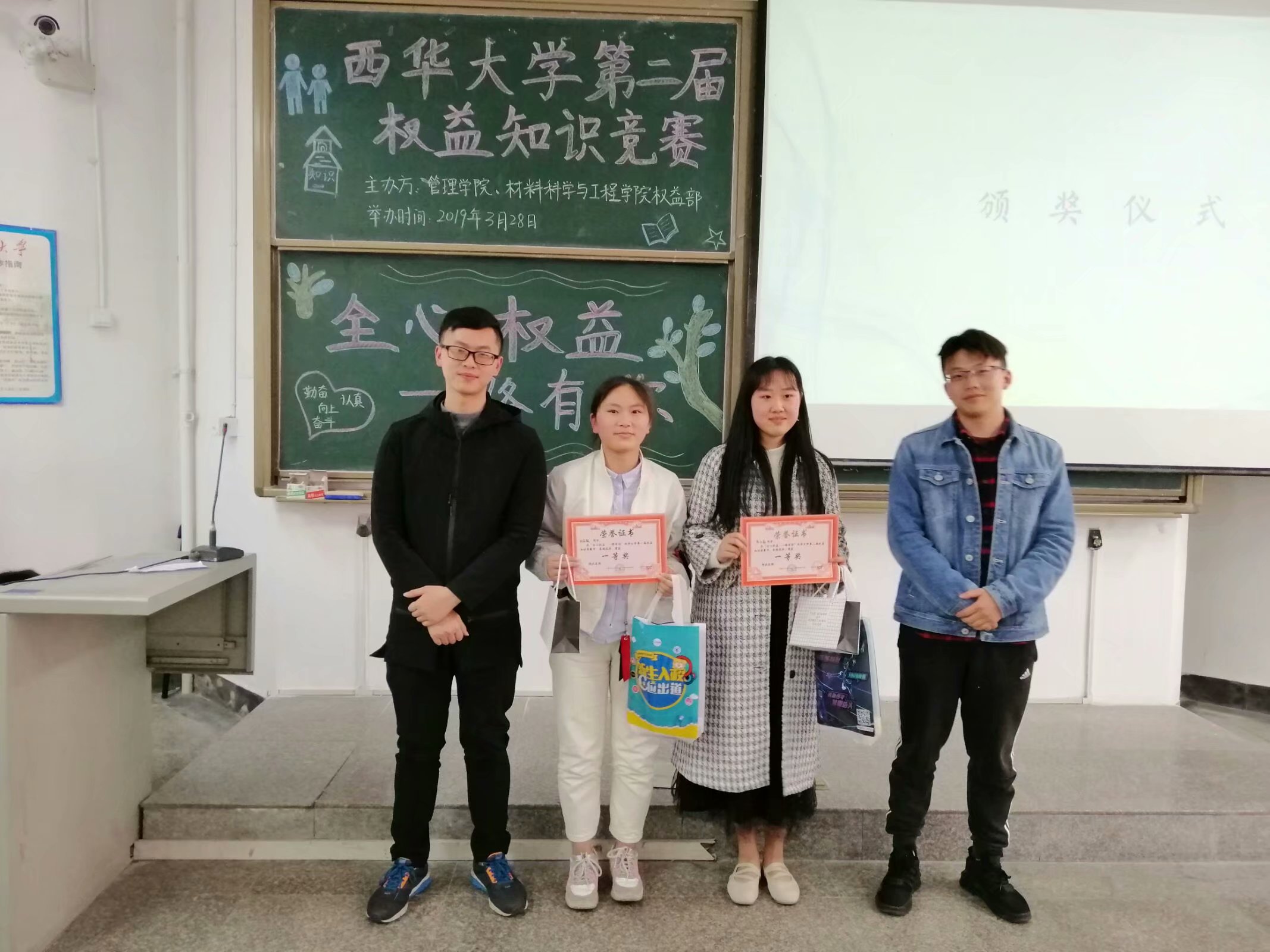3月28 日中午,西华大学第二届权益知识竞赛于5C103圆满落下帷幕。本次竞赛由管理学院、伟德国际1946源于英国共同举办,经过了初赛、决赛环节后,由参赛选手、工作人员和评委老师一齐为大家画上一个完美的句号。