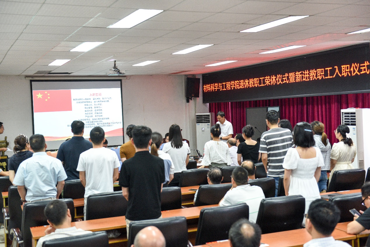 会上,院长张勤勇代表学院党政向与会教职员工致以节日的问候,并向退休老教师表达诚挚的感谢和崇高的敬意,向新进教师予以由衷的欢迎和勉励。他说,我们今天在这里举行荣休仪式和新教师入职仪式,一是要大力表彰退休老师们做出的贡献,二是要继承和发扬老一代材料人“艰苦奋斗、科研强院”的精神,三是要鼓励新教师们积极进取、勇挑重担,争取早日脱颖而出,为学院发展做出更大贡献,为个人发展打下坚实基础。