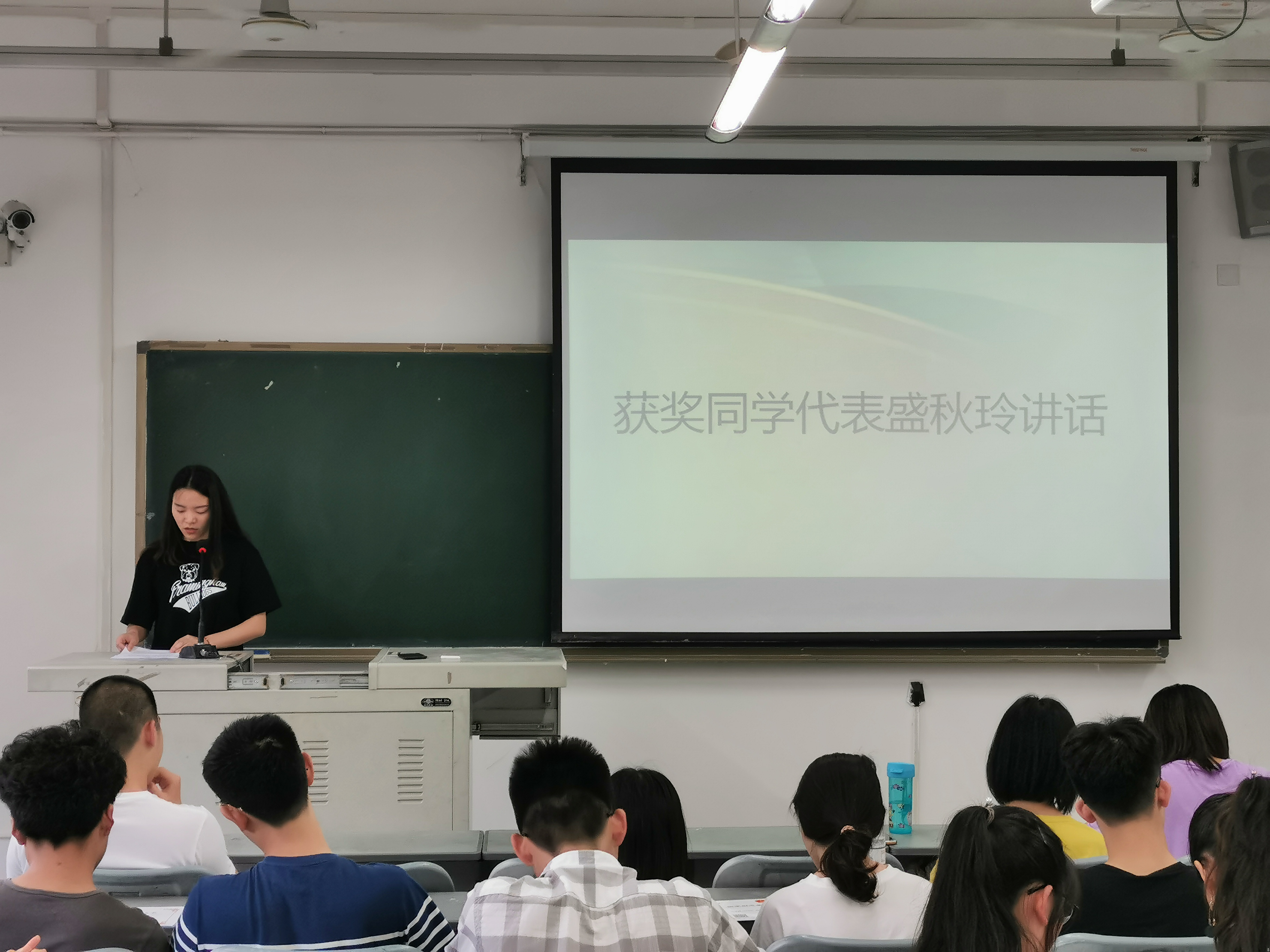 随后, 16级材料科学与工程获奖同学盛秋玲结合三年的成长经历、学习经验、实践创新分享人生感悟。努力不一定有回报,当努力了却没有看到回报时,只是量变还没有达到质变,证明努力还不够!