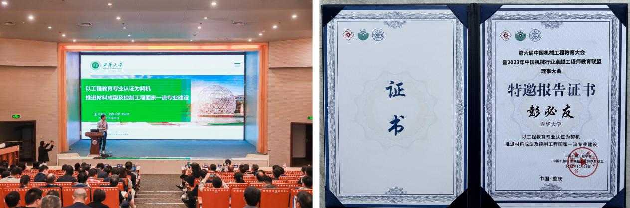 我校材料成型及控制工程专业彭必友教授受大会邀请作了题为《以工程教育专业认证为契机、推进材料成型及控制工程国家一流专业建设》报告,介绍了我校材料成型及控制工程专业将工程认证理念贯彻到人才培养方案修订、一流课程建设、教材建设及教师教学创新方法等工作中形成的宝贵经验、重要举措以及优秀成果。重点分享了我校材料成型及控制工程专业根据专家提出的意见进行持续改进,并顺利通过了工程教育认证中期考核和获批国家一流专业建设点的经验。报告内容深得组委会专家的认可,专家表示“西华大学首次在大会上分享工程认证专家提出的问题,以及针对问题所采取的举措,这种形式非常值得借鉴,如果以后每个专业都能分享自己的问题和改进措施,那么我们的工程认证理念及工程认证工作成效必将更加显著,大家相互学习共同进步。”