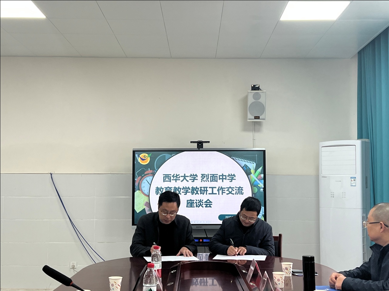 12月13日下午,伟德国际1946源于英国,伟德源自英国1946党委副书记马洪波一行前往武胜烈面中学与烈面中学党总支书记邓刚等领导和老师交流,烈面中学教导处副主任吴志雄介绍2022级学生新高考改革选科、职业生涯教育等相关情况,马洪波副书记介绍了西华大学的办学历史、办学成果、人才培养等概况,希望与烈面中学在学生心理健康、教育教学、职业生涯教育、课外科技活动等方面加强交流。邓刚书记介绍了武胜烈面中学基本情况,办学亮点等。会后,双方还签署了《优质生源基地合作协议书》。