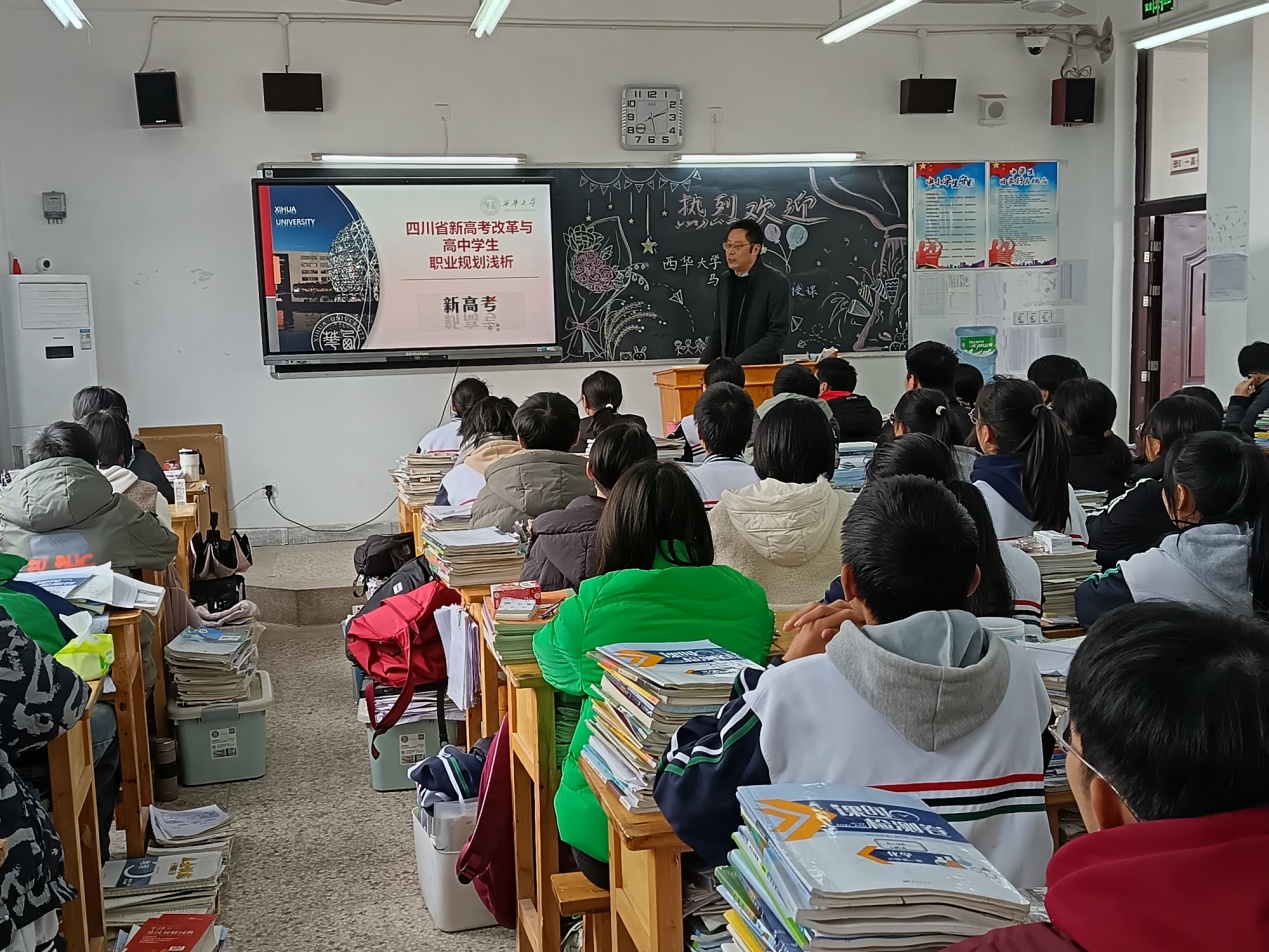 走访两校期间,马洪波副书记为学生讲授了《四川省新高考改革与高中学生职业规划浅析》的职业规划讲座,心理健康指导老师杨帆为学生带来了主题为《应对压力 轻松学习》的心理健康讲座。