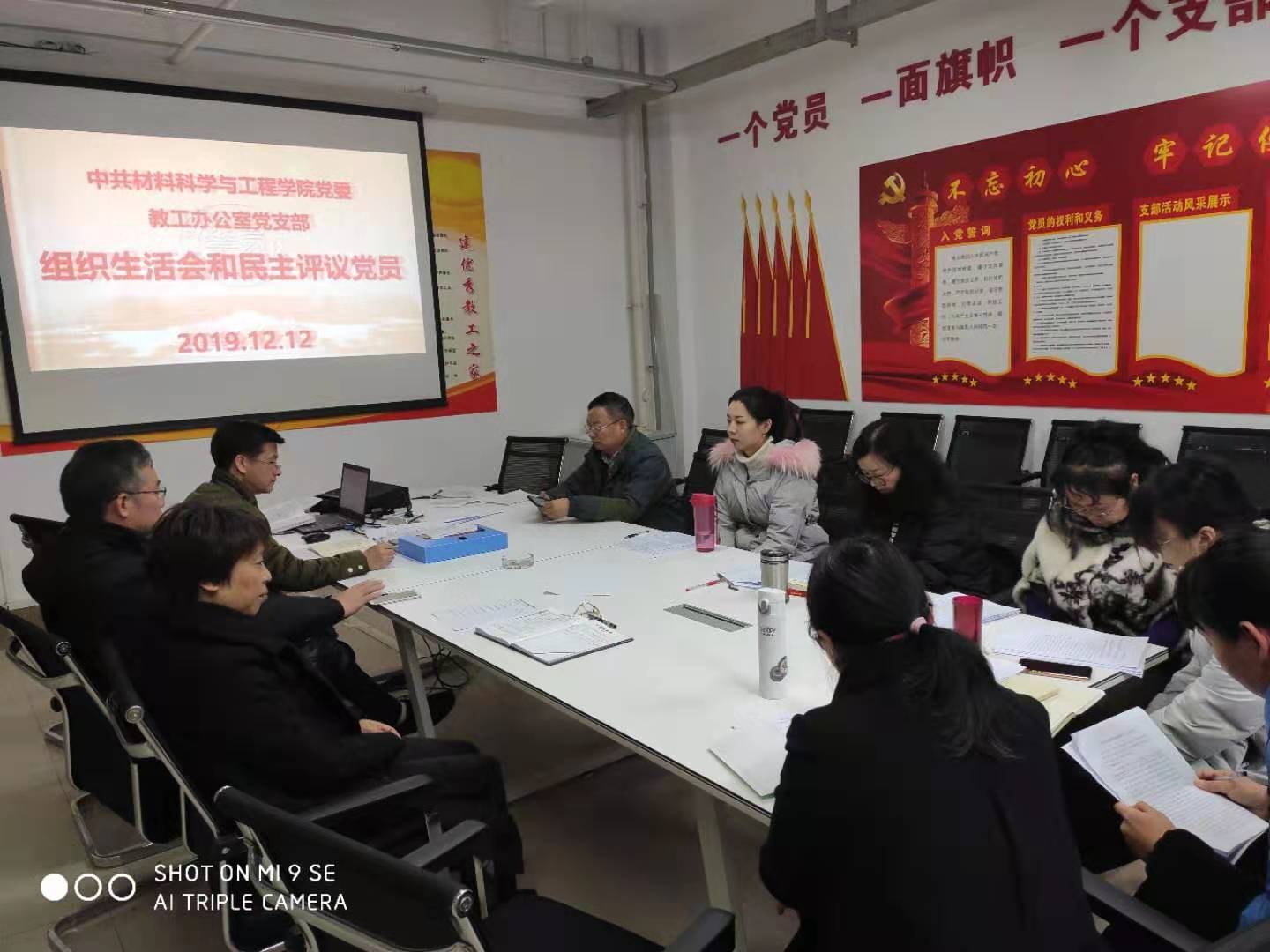 12月12日下午,伟德国际1946源于英国教工办公室党支部在5A302会议室召开2019年度专题组织生活会,开展民主评议党员工作,会议由支部书记刘云强主持,支部全体成员参加了民主评议,副院长丁士华列席会议并对全体党员进行了民主评议测评。