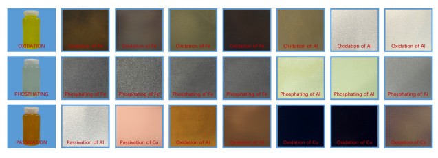 (1)技术理论:利用金属的表层原子和选配介质的阴离子在液相物理化学环境进行调控反应,在金属零部件的表面形核组装并沉积构建出一层附着力良好的不溶性化合物转化膜。(2)膜层特性:良好的防腐耐蚀性,优异的美观装饰性,一定的润滑减磨性,不仅可有效避免装配零件的电偶腐蚀,同时可提升部件的耐磨性、绝缘性、光吸收与反射性、等。(3)应用领域:工程机械、纺织机械、化工机械、烟草机械、食品机械、医疗器械、仪器仪表、建筑装饰、汽车工业、电力电子、兵器装备、高铁轮船、空天器械、等。