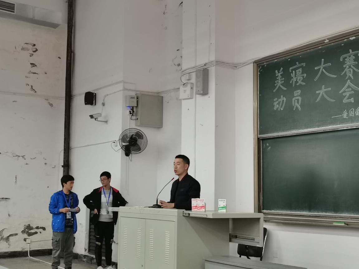 首先,主持人展示了此次大赛的动员视频,使同学们更加了解了此次美寝大赛的目的和意义。随后,罗小青老师上台讲话,介绍了西华大学美寝大赛的历史和影响,并指明本次活动将围绕着“爱国爱校·美心美寝”的主题开展。他还为同学们提出了许多宝贵意见,表达了对美寝大赛圆满成功的期望。