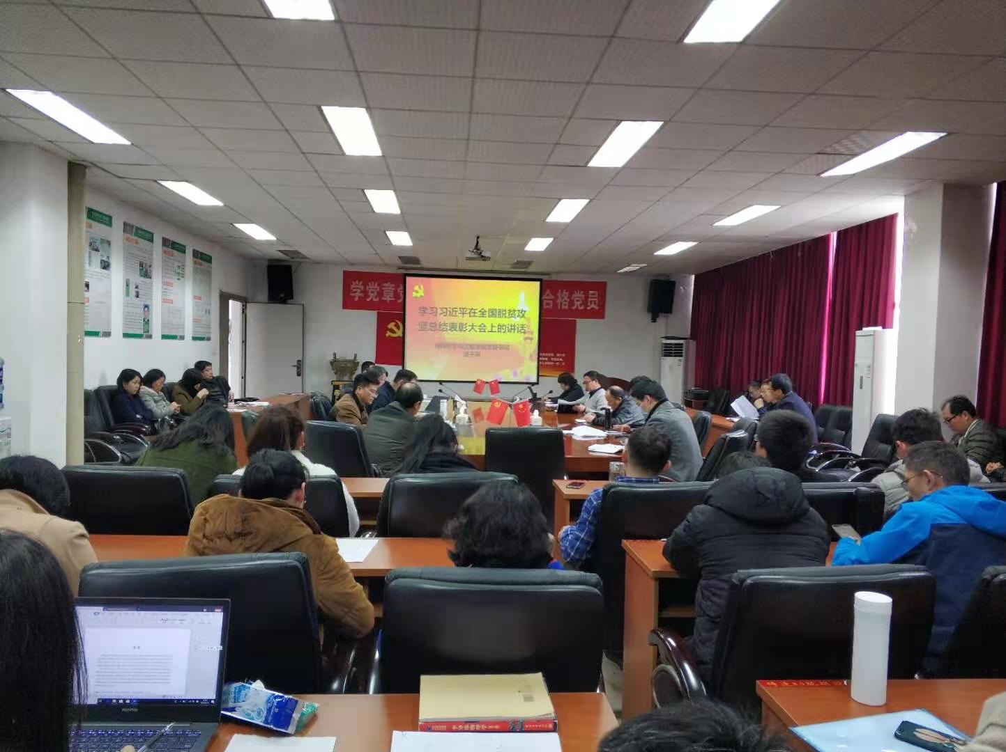 3月11日下午,伟德国际1946源于英国召开了全院大会,组织全体教师认真学习习近平总书记在全国脱贫攻坚总结表彰大会上重要讲话精神,会议由党委书记汤子琼主持,全体教师参加了本次会议。