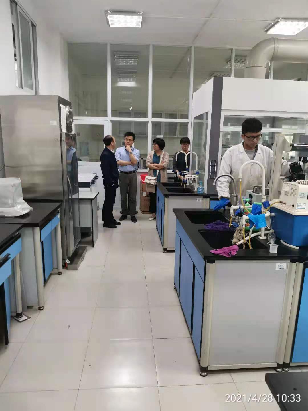 为进一步加强实验室运行管理工作,建立健全运行管理制度,规范运行管理行为,提升运行管理水平,4月28日上午,学院实验中心全体教师在王正云主任带领下到化学实验中心参观学习。化学实验中心杨维清主任和王会镇副主任热情地接待了实验中心全体教师一行。在两位主任的带领下,实验中心教师一行参观了化学实验中心一楼到四楼的各个房间,杨维清主任和王会镇副主任介绍了房间的基本情况,对中心的相关管理制度及管理举措等进行了无私分享。在参观学习过程中,双方教师就安全制度、管理制度、管理方法和手段、设备使用管理、实验教学等多方面进行了沟通、学习和交流探讨。通过参观学习,实验中心全体教师开阔了眼界,学习了兄弟单位的有益的经验,为学院实验中心的工作开展提供了有益的借鉴,下一步学院实验中心将展开讨论,落实相关有益经验,为进一步搞好学院实验中心的各方面工作和保障材料专业工程认证打坚实的基础。