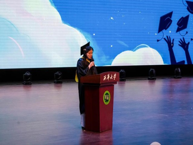 晚会伊始,查康书记讲话深情寄语毕业生,字里行间满是对毕业生的关怀与期望。之后,毕业生代表张仲存上台发言,深情回顾校园时光,既有对教室梧桐的眷恋,也有逐梦未来的豪情,引发师生共鸣。
