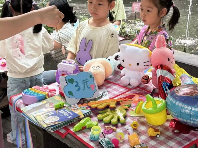 活动前期,为确保流程顺畅,青服队对参与者进行了系统培训。活动现场,一个个摊位整齐排列,各类物品琳琅满目。从儿童玩具、学习用品到书籍、衣物,应有尽有。“摊主们”热情高涨,纷纷使出浑身解数推销自己的商品。有的精心制作了创意海报,有的用生动有趣的语言吆喝叫卖,还有的推出“买一送一”“打折优惠”等促销活动,现场氛围十分火爆,吸引众多居民参与。孩子们在活动中尤为活跃,他们在家长陪同下挑选心仪物品,在实践中学习沟通与理财。“孩子不仅学会了理财,还锻炼了社交能力,收获很大。”一位家长满意地表示。活动负责人介绍:“本次跳蚤市场旨在倡导环保节约、循环利用,同时增进邻里互动,营造和谐社区氛围。从现场反馈看,活动效果超出预期,未来将持续举办。”