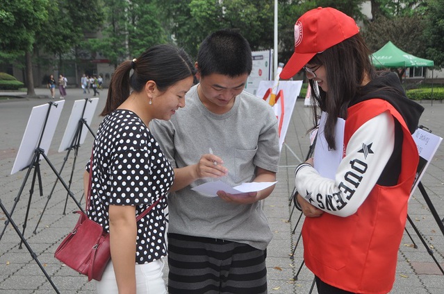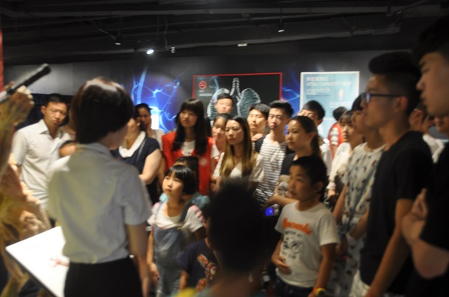 5月30日活动当天40余名西华大学志愿者在成都天府广场生命奥秘博物馆前进行校外宣传。活动在生命奥秘博物馆摆放自制的烟草危害宣传KT 板,烟草危害门型展架,真实肺标本,控烟合同等邀请更多成都市民参与到活动中,了解更多烟草的危害并签订了控烟合同和横幅签名表明自己的控烟决心。大家还通过参观生命奥秘博物馆,由讲解员的对真实的人体标本讲解让大家更加了解烟草对人的危害。在天府广场活动现场,还有多成都市民自发参与到控烟活动中来,直接参与人数达到千余人次,其中有多名父母带着自己的小孩来参与我们的活动,在志愿者和父母们的讲解下让更多的小朋友了解到了烟草的危害,活动得到了参与市民的一致好评。
