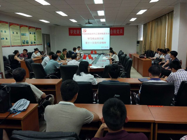学院党委书记汤子琼领学了王东明书记代表在四川省第十一次党代会作的题为《紧密团结在以习近平同志为核心的党中央周围,建设美丽繁荣和谐四川,推动治蜀兴川再上新台阶》的工作报告,对本次党代会主要精神进行了详细解读。汤书记结合学院实际工作,首先讲了学习体会:一是深化全面从严治党,建设良好政治生态,真正把“四个意识”转变为思想自觉、党性观念、纪律要求和实际行动。二是结合王书记的报告的宏伟蓝图,对材料学科尤其是对先进制造业和高端装备制造业指明了方向,学院应该抓住此次企业的转型升级的机遇,改变观念,大力实施“走出去”和“引进来”战略,不断提高学院的综合实力。