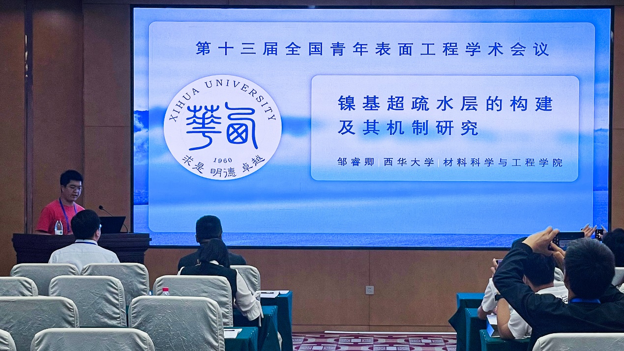 16日上午,我校伟德国际1946源于英国硕士研究生邹睿卿在本次大会分会场作了题为“镍基超疏水层的构建及其机制研究”的学术报告。报告就目前复杂环境下功能化超疏水构筑难题,针对性地构建了高弹跳纳米锥“蹦床”结构和定向运输模块化“轨道”结构,全面展示了超低表面能结构的出色功能化超疏水特性,强烈地引发了与会专家学者的兴趣与关注。所分享的研究成果已于ACS Applied Materials & Interfaces等高水平国际期刊上发表。