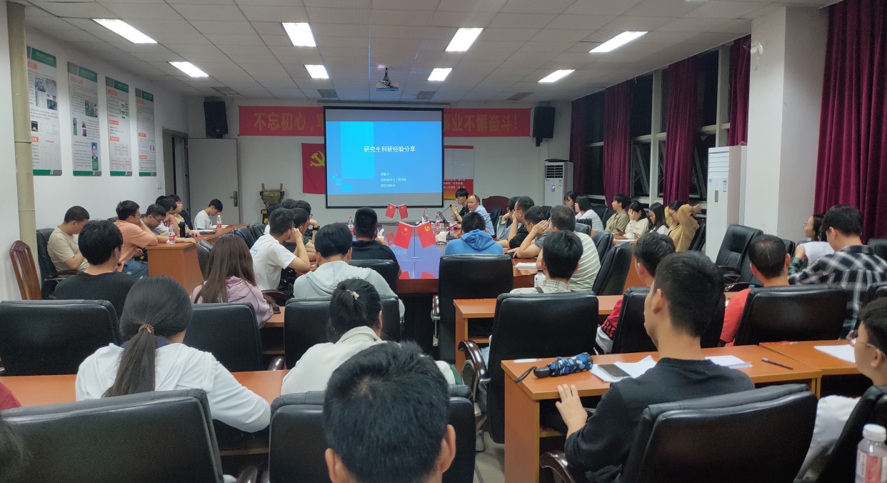 9月14日晚,在5A-427会议室,学院邀请优秀校友周榆力回校开展学术交流,2021级全体研究生参加,由研究生班主任闵忠华老师主持报告会。