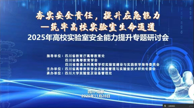 下午,全体教师在实验中心办公室集中参与四川省高等教育学会实验室管理与实验室技术研究专委会主办的“2025 年高校实验室安全能力提升”专题研讨会。来自全国多所高校的管理专家围绕“高校实验室安全责任体系构建与实践路径”、“数字化技术在实验室安全精细化管理中的应用”、“高校实验室消防安全与应急实战策略”、“高校实验室安全课程与实训体系的创新实践”四大主题展开研讨。参会教师认真学习并交流探讨,实验中心教师纷纷表示:此次学习让我们深刻认识到,教师不仅是实验教学的指导者,更是安全防线的守护者。特别是数字化管理工具和安全课程创新案例,为我们优化日常管理提供了新思路,今后将把设备巡检、学生安全培训等责任细化到每一个实验环节。同时,专家分享的消防安全应急策略和责任体系构建路径很有借鉴意义,我们会在后续实验室管理中严格执行安全准入制度,将实训演练融入日常实验教学和科研实践中,确保学生从源头树立安全意识、掌握应急技能。