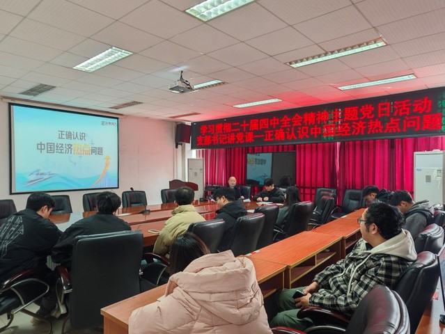 12月1日下午,学院材料与化工专业研究生党支部在5A427会议室举行“学习贯彻党的二十届四中全会精神”为主题的党日活动。支部书记闵忠华以“正确认识中国经济热点问题”为题讲授党课,支部全体党员参会。