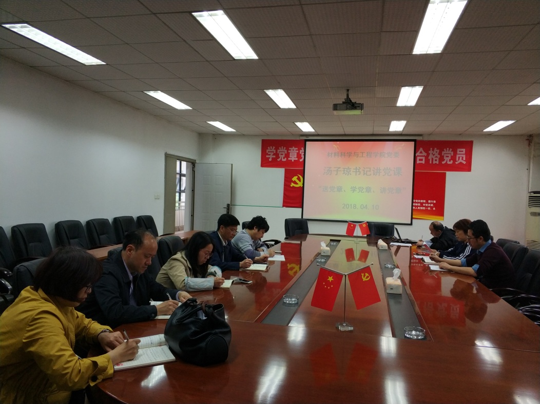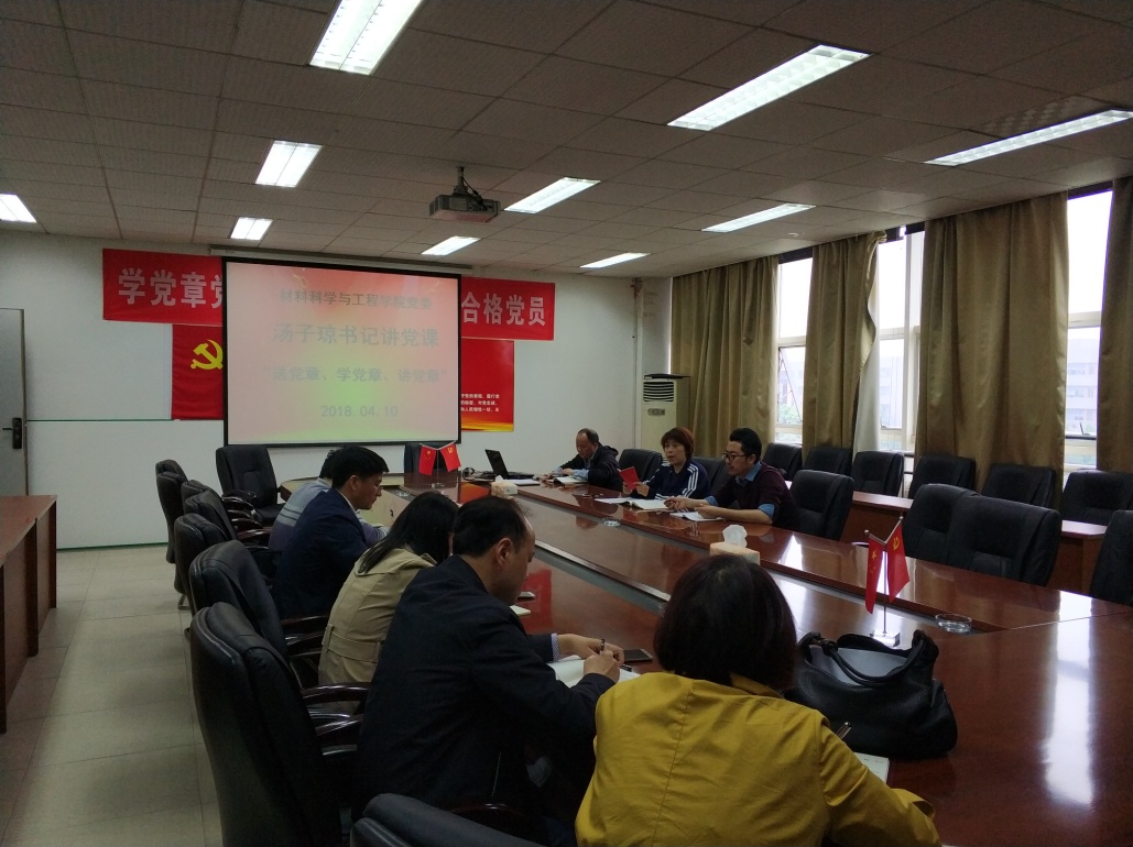 2018年4月10日,伟德国际1946源于英国党委书记汤子琼在学院会议室5A-427,对学院全体教工支部书记和学生党总支书记以讲党课的形式开展“送党章学党章讲党章”的活动。