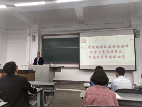 党委副书记马洪波老师做学生党员参与学风建设和迎评促建工作动员,他要求在学生党支部和全体学生党员要提高认识、加强学习、履职尽责,在学风建设和审核评估中发挥党支部战斗堡垒作用和党员先锋模范作用。