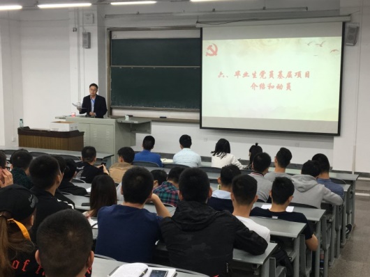 最后,学院党委对毕业生党员进行了基层项目的介绍和动员,如三支一扶、西部计划、边疆基层公务员项目等,鼓励他们到基层、到边疆,到党和国家需要的地方去挥洒青春、建功立业。