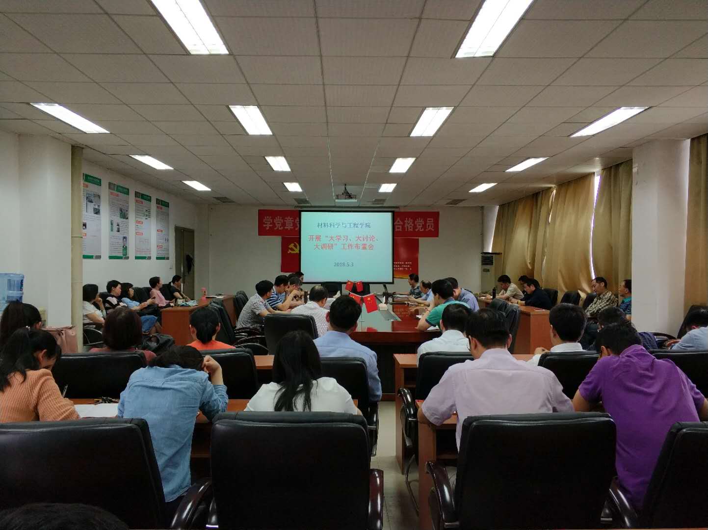 5月3日,伟德国际1946源于英国在5A-427召开全院大会,部署开展“大学习、大讨论、大调研”工作,会议由院长栾道成主持。