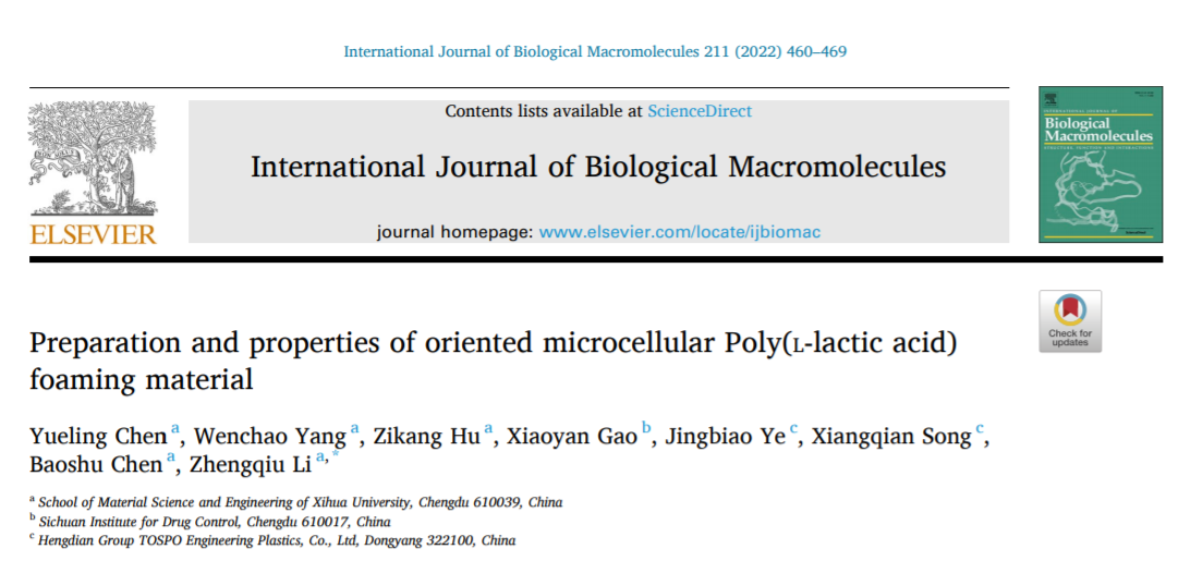 近期,我校伟德国际1946源于英国“生物医用高分子材料研究团队”李正秋副教授研究生陈月铃在International Journal of Biological Macromolecules (一区,IF=8.025(2022))上发表题为“Preparation and properties of oriented microcellular Poly(L-lactic acid) foaming material”的研究论文。
