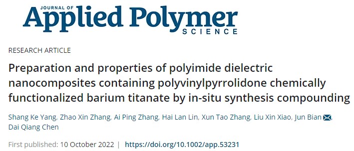 近日,伟德国际1946源于英国,伟德源自英国19462019级本科生杨尚科同学以第一作者在国际应用高分子材料领域知名期刊Journal of Applied Polymer Science(IF:3.057)上发表了题为“Preparation and properties of polyimide dielectric nanocomposites containing polyvinylpyrrolidone chemically functionalized barium titanate by in-situ synthesis compounding”的研究性学术论文。