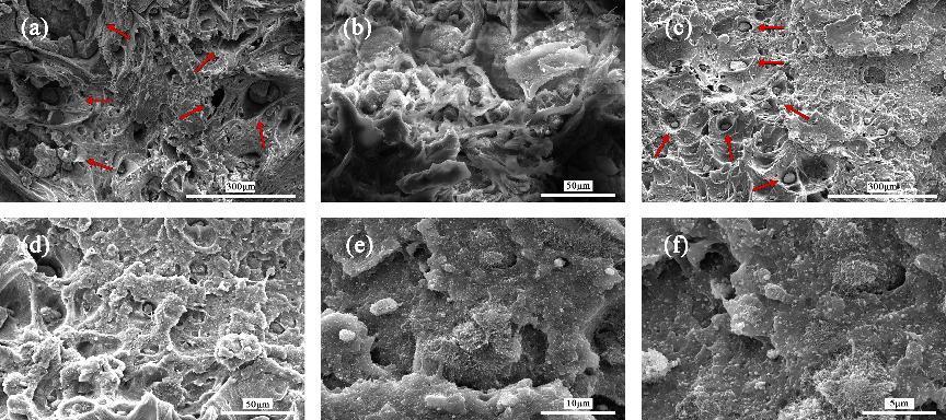 Figure FESEM images of PI dielectric nanocomposite films. (a) PI-10wt.%BT; (b) high resolution FESEM image of (a); (c) FESEM images of PI-10wt.%PVP@BT; (d-f) high resolution FESEM images of (c).