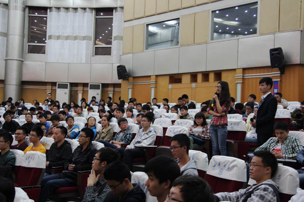 在分党委书记谢君老师简单的讲话后,首先进行就业指导的是阮永生副教授,“人最怕的事情是不知道明天该干什么!”阮处长语重心长地说。他主要从两个方面为同学们解惑。一是大学的光阴如何度过,二是如何正确认识专业学习与人生远景的关系:“首先,在学校里面得学会做人,其次,得学会做事,要让自己的每一天过得充实有意义。”然后,阮处长向同学们提出了一种观念即正确认识自己专业知识与人生远景的关系,两种习惯即思考的习惯和思维的习惯,三种能力包括发现问题的能力、探索问题的能力和解决问题的能力,四件事情则分别是学好专业知识、广泛的阅读书籍、锻炼好身体、结交志同道合的朋友。最后,阮处长给同学们提出了四点建议:一是不断努力,对自己负责,对父母负责,对社会负责;二是要明白自己的责任在哪里;三是培养良好的素质;四是从基础的事做起,不要好高骛远。阮处长更像是一位长辈、学长与同学们交谈,每一句话都是发自内心深处,他希望每一位同学都能够在大学毕业时找到一份适合自己的工作。到了现场提问环节,同学们积极提问,阮处长一一给他们做出了详细的回答,现场不断响起热烈的掌声。