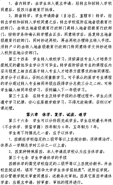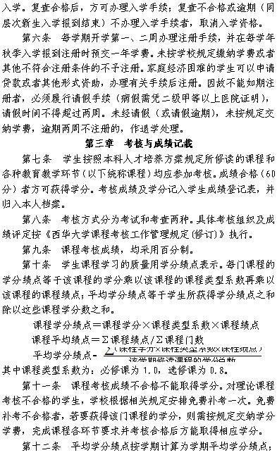 西华大学关于印发《本科学生学分制学籍管理规定》的通知