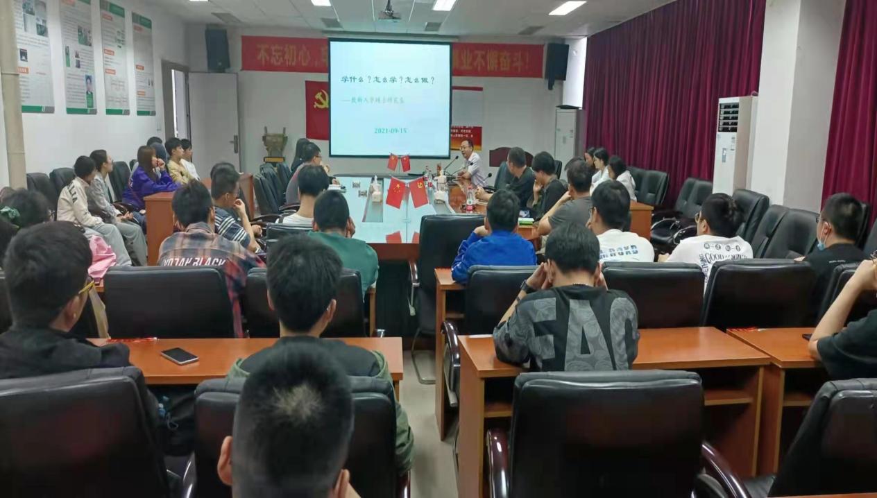 九月十五日下午三点,在会议室5A-427。请到我们学院优秀的教师马素德老师进行讲座,参加讲座的为全体2021级研究生新生,由闵忠华老师主持讲座。