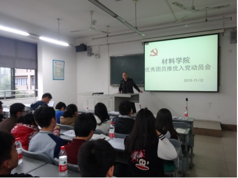 为积极推动学院学生党建工作,从源头上把好质量关,材料学院于11月12日在5C204召开了优秀团员推优入党动员会,参加本次会议的有学院学生总支书记郭忠林、各年级负责人,各班团支书、分团委学生会青马培训负责干部。