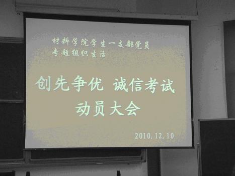 “创先争优,诚信考试”动员大会,学院分党委书记魏远文到会,他说到期末考试了,大家要认真复习,