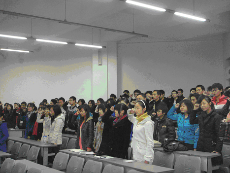 会后,在学生党员代表蒋大天带领下,党员们纷纷宣誓:在本学期期末考试中认真复习,
