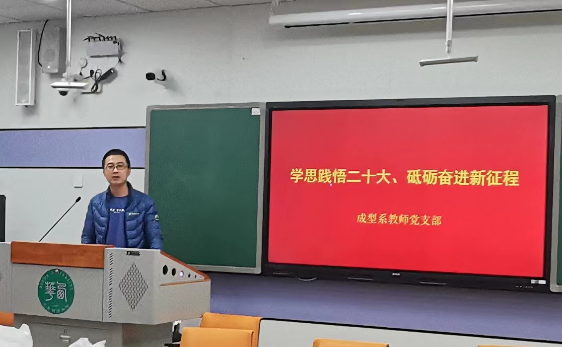 首先,支部书记徐磊带领与会人员重温了党的二十大精神,徐书记希望成型支部全体党员在人才培养、科学研究中进一步发挥党员先锋模范作用,为助力学院高质量发展贡献个人力量。随后,系主任彭必友汇报了一流专业的建设情况,并对一流专业2023年的任务进行了安排。党员教师纷纷表示,要用党的先进理论武装头脑,学深悟透党的二十大精神,撸起袖子加油干,努力把材料成型专业建设成为国家一流专业。