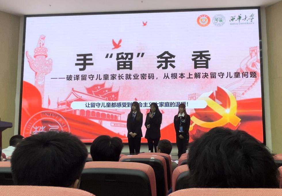决赛路演环节,伟德国际1946源于英国2021级本科生张仲存代表团队在宜宾校区1教101报告厅答辩,介绍了在“乡村振兴”背景下,充分发挥交叉学科的优势,针对留守儿童家长就业创新创办试点车间、农产品的滞销等相关工作。张仲存、钟璐、邹霞等同学在邹颖、马洪波老师指导下完成了科教杯决赛的答辩。